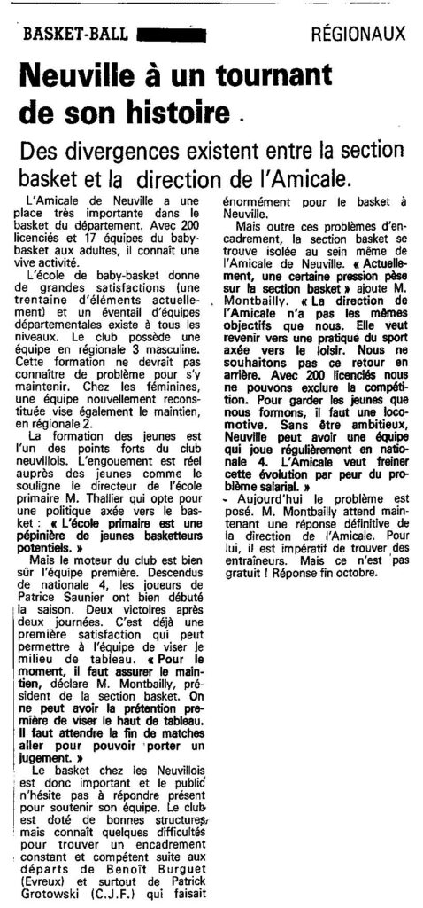 Saison 1988-1989 : L’avenir du Basket à l’Amicale de Neuville fait débat !