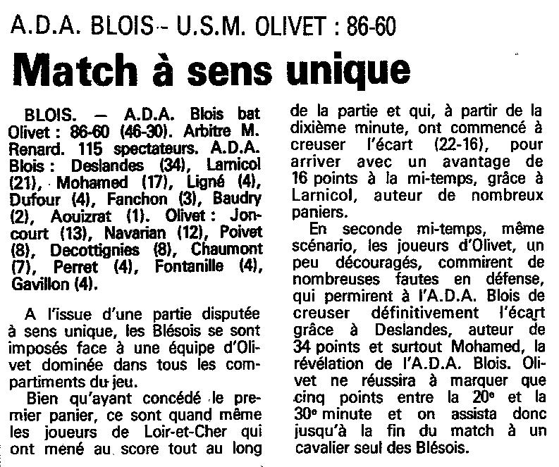 Saison 1988-1989 : Lors de la 4ème Journée du Championnat de Régionale Masculine 1, l’ADA Blois bat l’USM Olivet