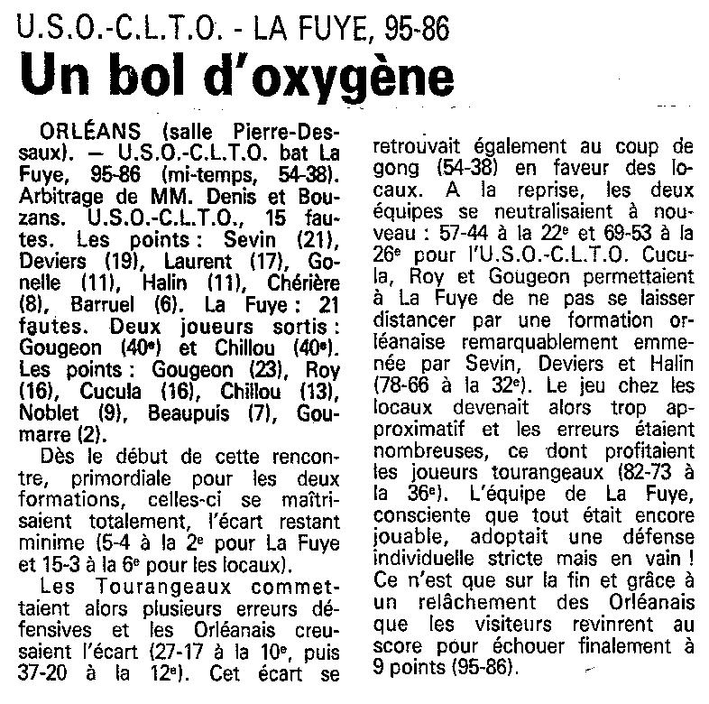 Saison 1988-1989 : Lors de la 5ème Journée du Championnat de Régionale Masculine 1, l’USO-CLTO bat le PL La Fuye