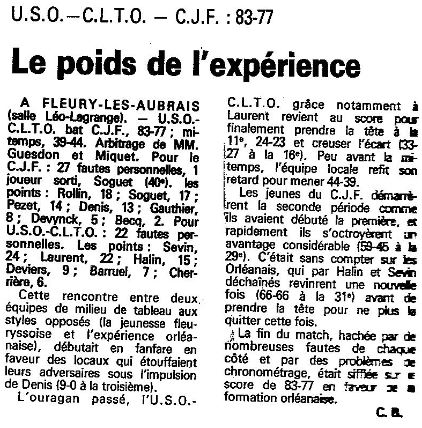 Saison 1988-1989 : Lors de la 6ème Journée du Championnat de Régionale Masculine 1, l’USO-CLTO bat le CJF Les Aubrais