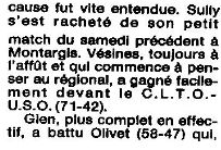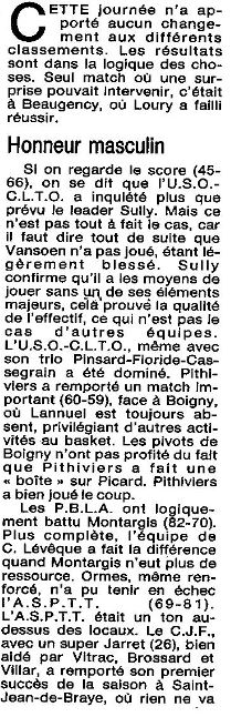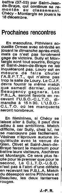 Saison 1988-1989 : Commentaires de JP Rossignoles sur la 7ème Journée des Championnats Départementaux du Loiret