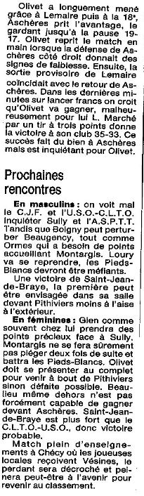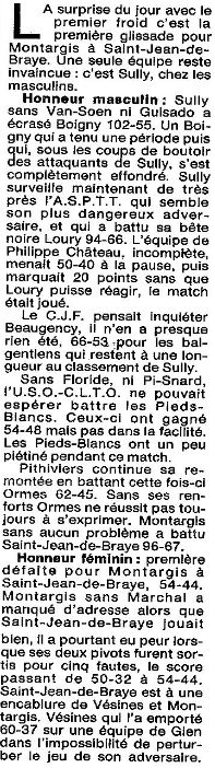 Saison 1988-1989 : Commentaires de JP Rossignoles sur la 8ème Journée des Championnats Départementaux du Loiret