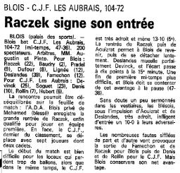 Saison 1988-1989 : Lors de la 8ème Journée du Championnat de Régionale Masculine 1, Blois bat le CJF Les Aubrais