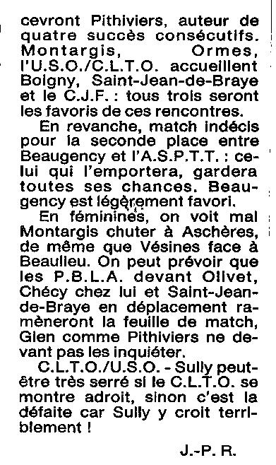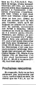 Saison 1988-1989 : Commentaires de JP Rossignoles sur la 9ème Journée des Championnats Départementaux du Loiret