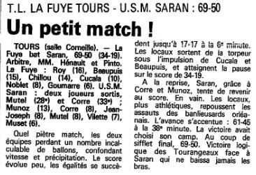 Saison 1988-1989 : Lors de la 9ème Journée du Championnat de Régionale Masculine 1, le PL La Fuye bat l’USM Saran