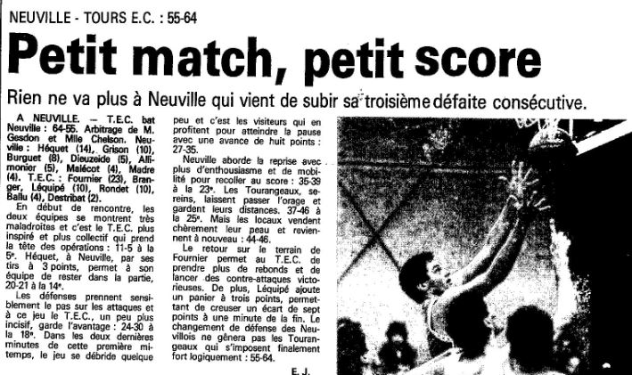 Saison 1988-1989 : Lors de la 9ème Journée du Championnat de Régionale Masculine 1, le Tours EC bat Neuville