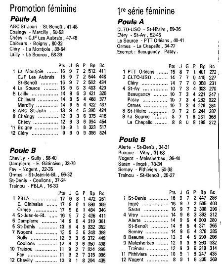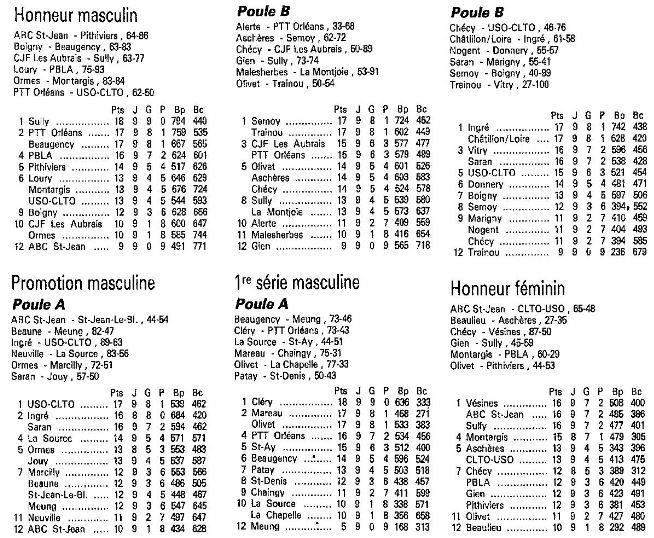 Saison 1988-1989 : Résultats et Classements après la 9ème Journée des Championnats Départementaux du Loiret