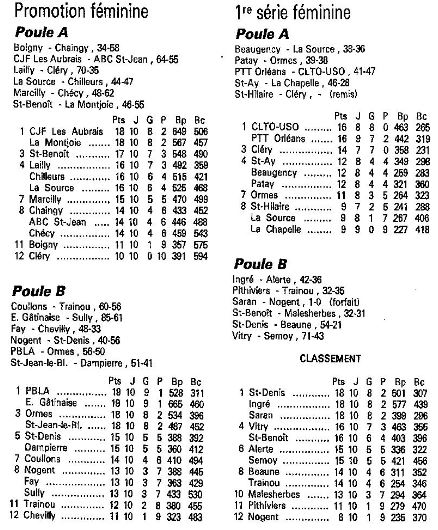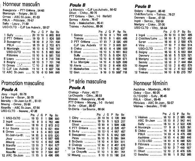 Saison 1988-1989 : Résultats et Classements après la 10ème Journée des Championnats Départementaux du Loiret
