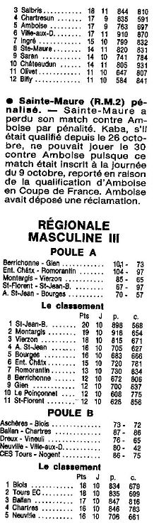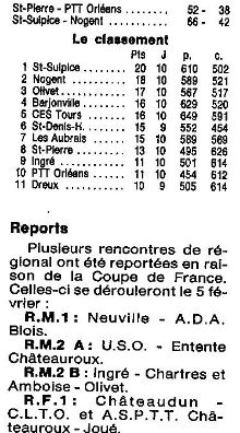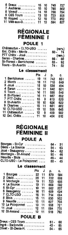 Saison 1988-1989 : Résultats et Classements après la 11ème Journée des Championnats Régionaux