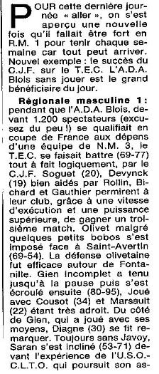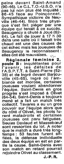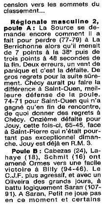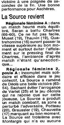 « Saison 1988-1989 : Lors de la 11ème Journée du Championnat de Régionale Féminine 1, Saran bat Azur Chartres