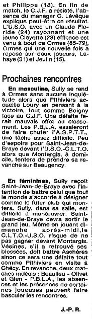 Saison 1988-1989 : Commentaires de JP Rossignoles sur les Championnats Départementaux du Loiret