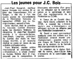 Saison 1988-1989 : Jean-Claude Bois responsable de la Commission des Jeunes de la FFBB