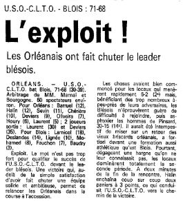 Saison 1988-1989 : Lors de la Journée du 15 Janvier 1989, en Championnat de Régionale Masculine 1, l’USO- CLTO bat le leader l’ADA Blois