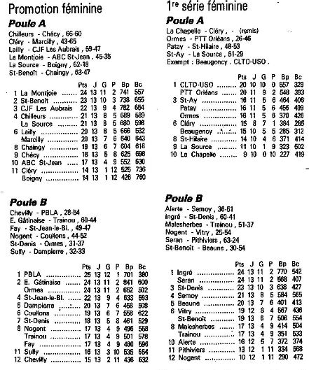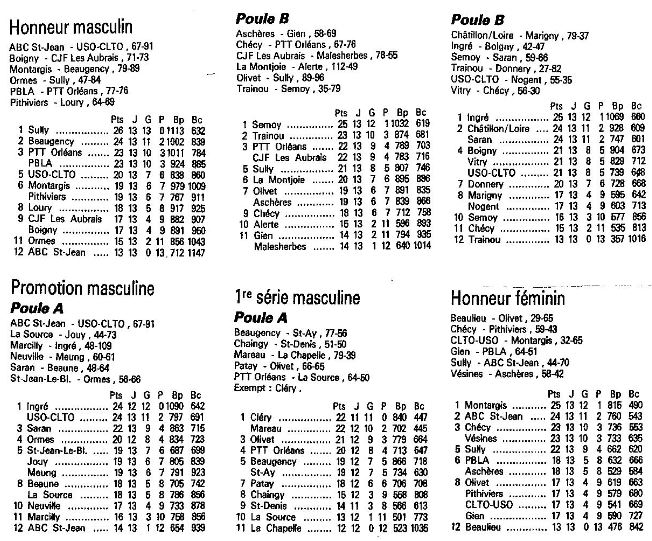 Saison 1988-1989 : Résultats et Classements des Championnats Départementaux du Loiret après la Journée du 15 Janvier 1989