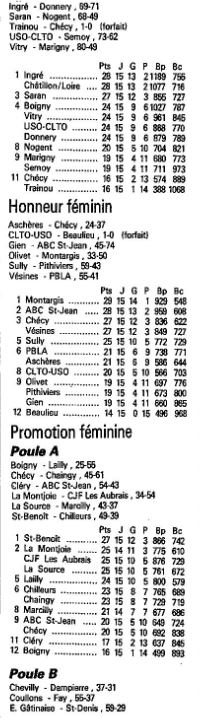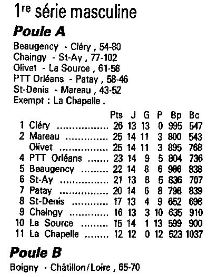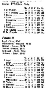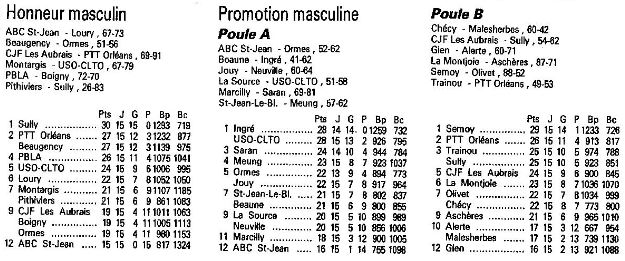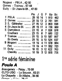 Saison 1988-1989 : Résultats et Classements des Championnats Départementaux du Loiret après la Journée du 29 Janvier 1989