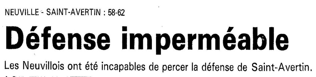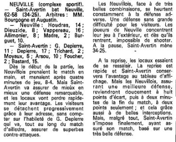 Saison 1988-1989 : Lors de la Journée du 19 Février 1989 en Championnat de Régionale Masculine 1, Saint Avertin bat Neuville