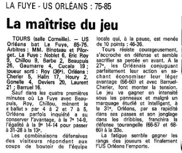 Saison 1988-1989 : Lors de la Journée du 19 Février 1989 en Championnat de Régionale Masculine 1, l’USO-CLTO bat PL La Fuye