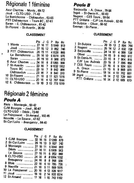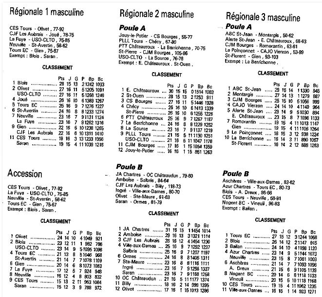 Saison 1988-1989 : Résultats et Classements après la Journée du 19 Février 1989 des Championnats Départementaux du Loiret »