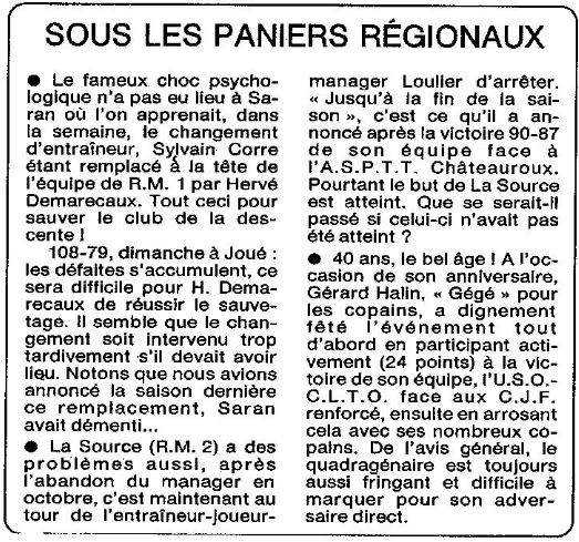 Saison 1988-1989 : Commentaires de JP Rossignoles sur la Journée du 26 Février 1989 des Championnats Régionaux