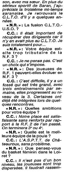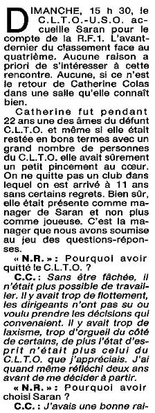 Saison 1988-1989 : Interview de Catherine Colas réalisée par JP Rossignoles