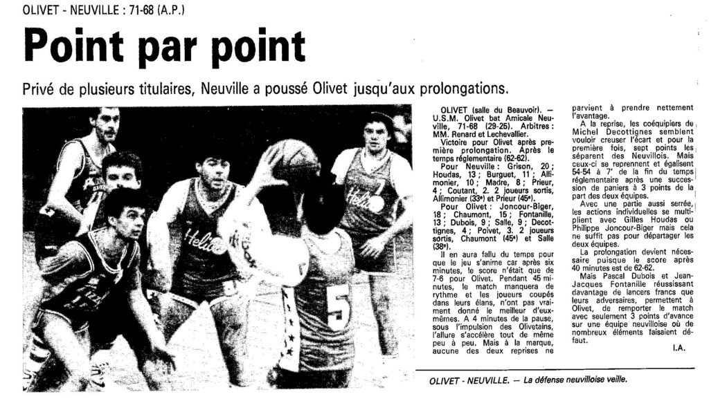 Saison 1988-1989 : Lors de la Journée du 26 Février 1989 en Championnat de Régionale Masculine 1, Olivet bat Neuville