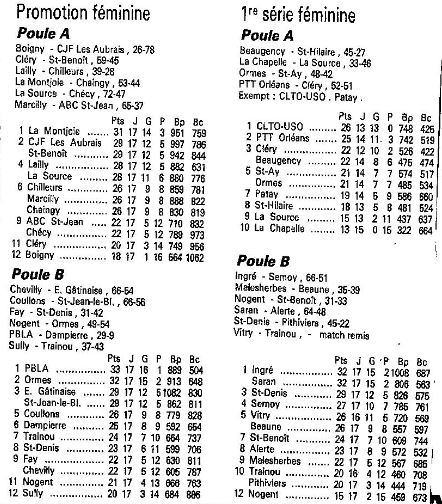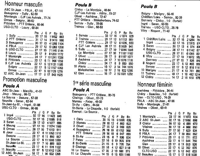 Saison 1988-1989 : Résultats et Classements après la Journée du 26 Février 1989 des Championnats Départementaux du Loiret