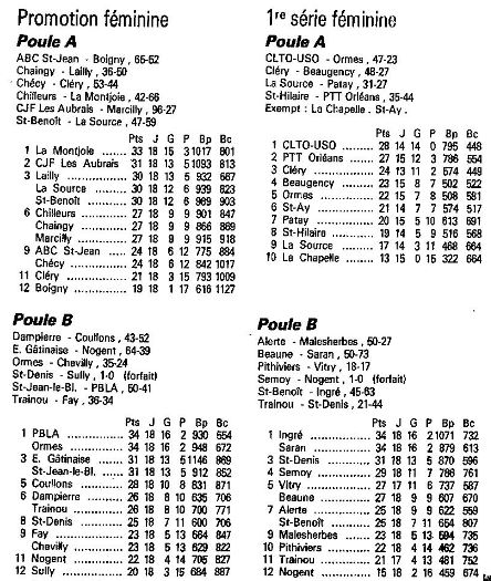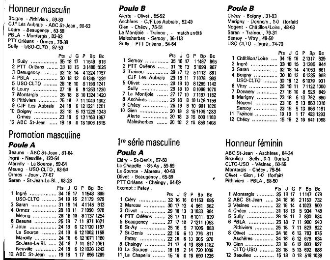Saison 1988-1989 : Résultats et Classements après la Journée du 5 Mars 1989 des Championnats Départementaux du Loiret