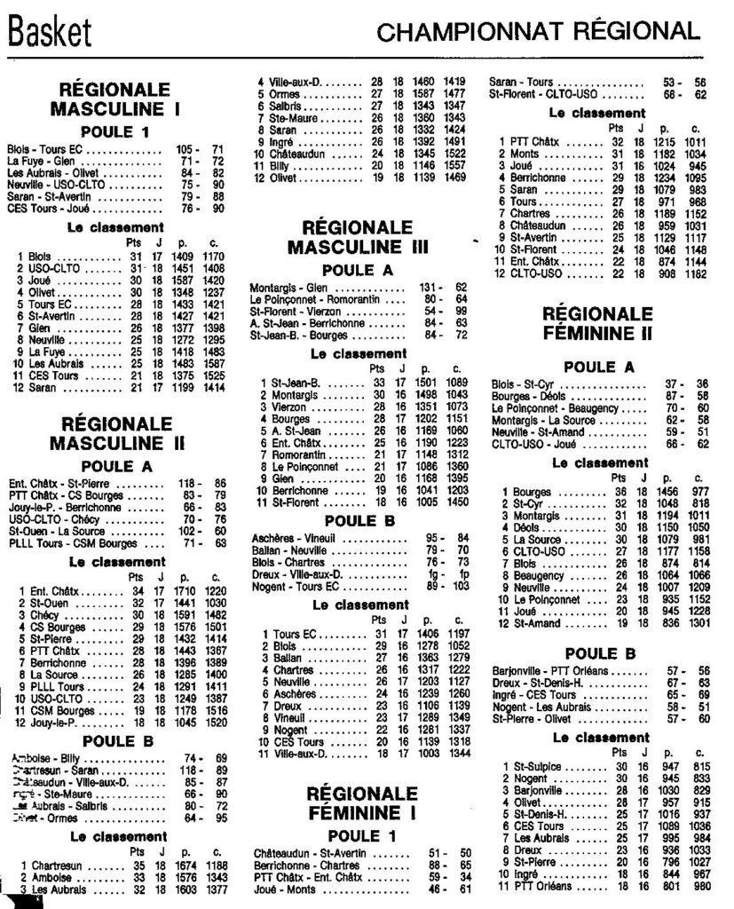 Saison 1988-1989 : Résultats et Classements après la Journée du 5 Mars 1989 des Championnats Régionaux