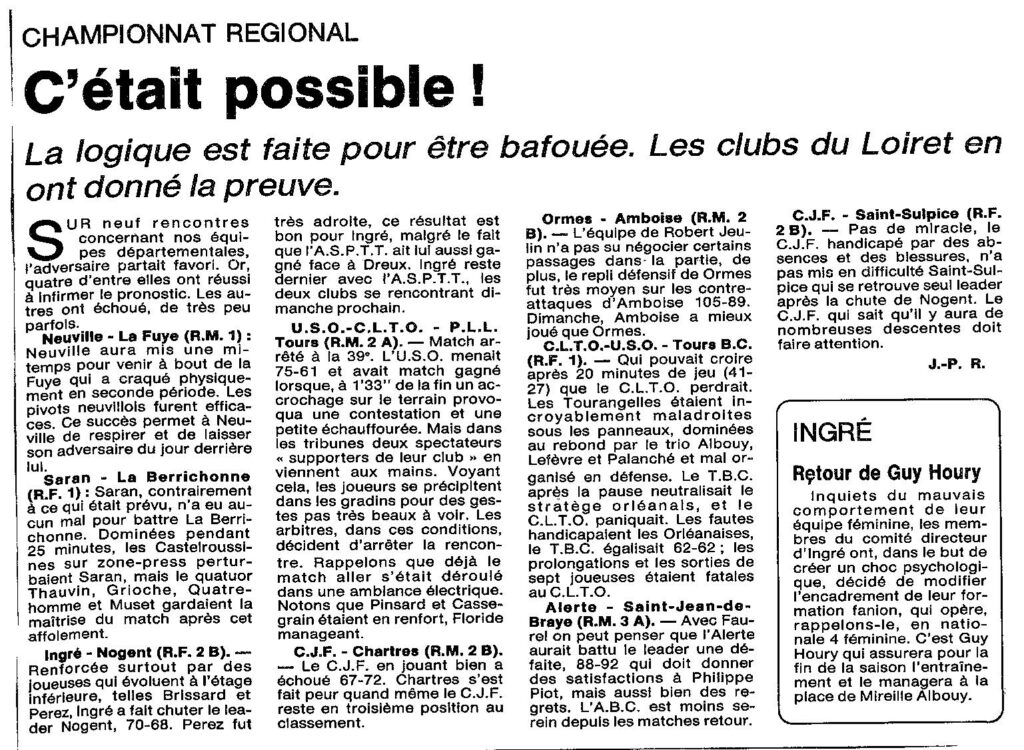 Saison 1988-1989 : Commentaires sur la Journée du 12 Mars 1989 des Championnats Régionaux