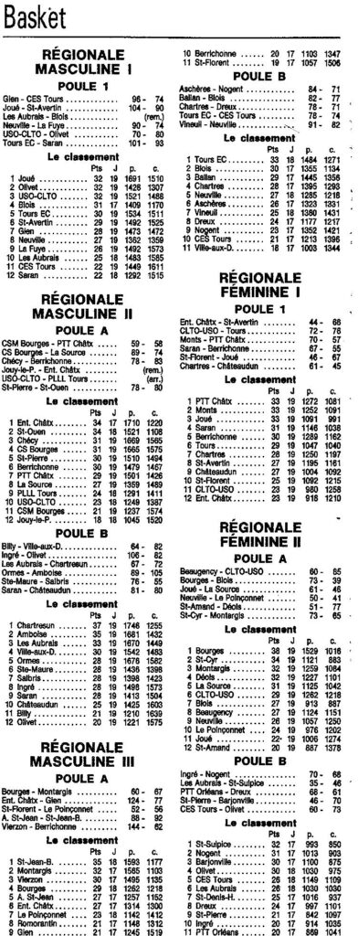Saison 1988-1989 : Résultats et Classements après la Journée du 12 Mars 1989 des Championnats Régionaux
