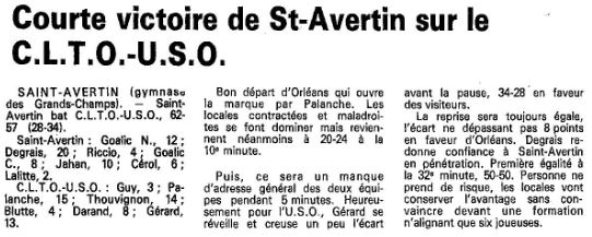 Saison 1988-1989 : Lors de la Journée du 19 Mars 1989, en Championnat de Régionale Féminine 1, Saint-Avertin bat le CLTO-USO