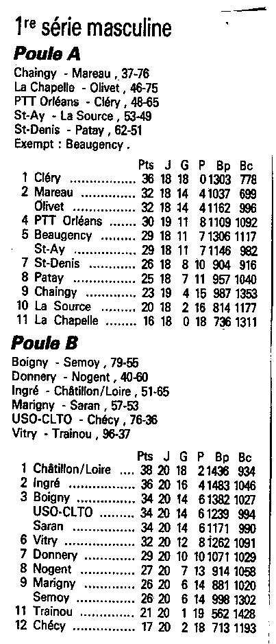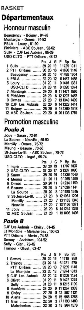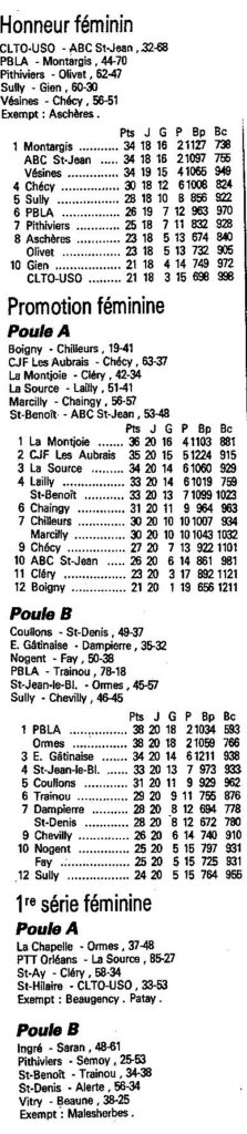 Saison 1988-1989 : Résultats et Classements après la Journée du 19 Mars 1989 des Championnats Départementaux du Loiret