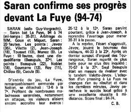 Saison 1988-1989 : Lors de la Journée du 19 Mars 1989, en Championnat de Régionale Masculine 1, Saran bat PL La Fuye