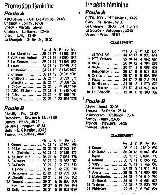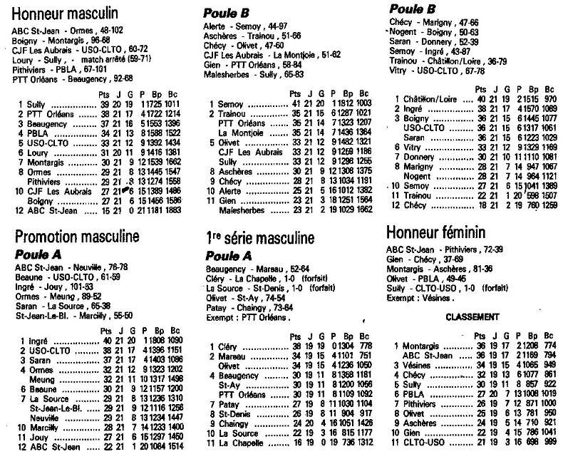 Saison 1988-1989 : Résultats et Classements après la Journée du 16 Avril 1989 des Championnats Départementaux du Loiret