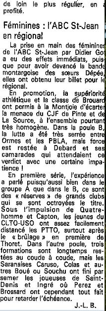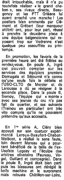 Saison 1988-1989 : Bilan des Championnats Départementaux du Loiret par JL. Bouland
