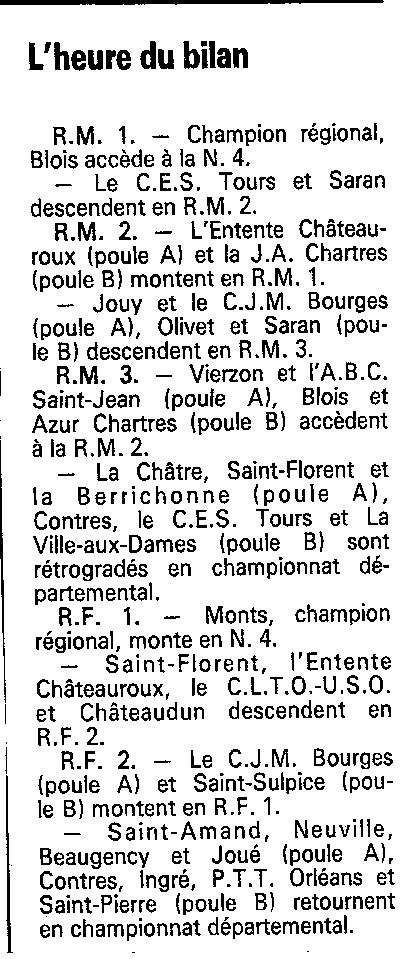 Saison 1988-1989 : Bilan du Championnat de Régionale Masculine 1
