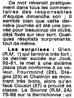 Saison 1988-1989 : Commentaires de JP Rossignoles sur la Journée du 23 Avril 1989 des Championnats Régionaux