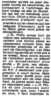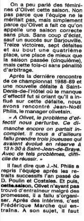 Saison 1988-1989 : Interview de J-N Philis entraîneur des féminines de l’USM Olivet