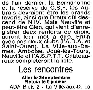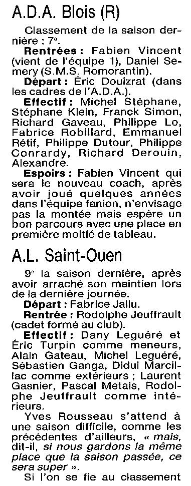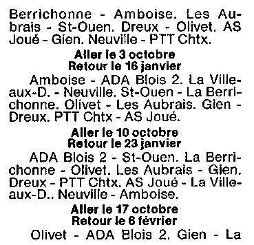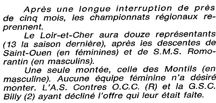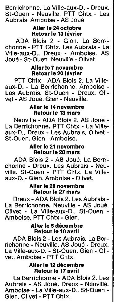 Saison 1993-1994 : Calendrier du Championnat de Régionale Masculine 1