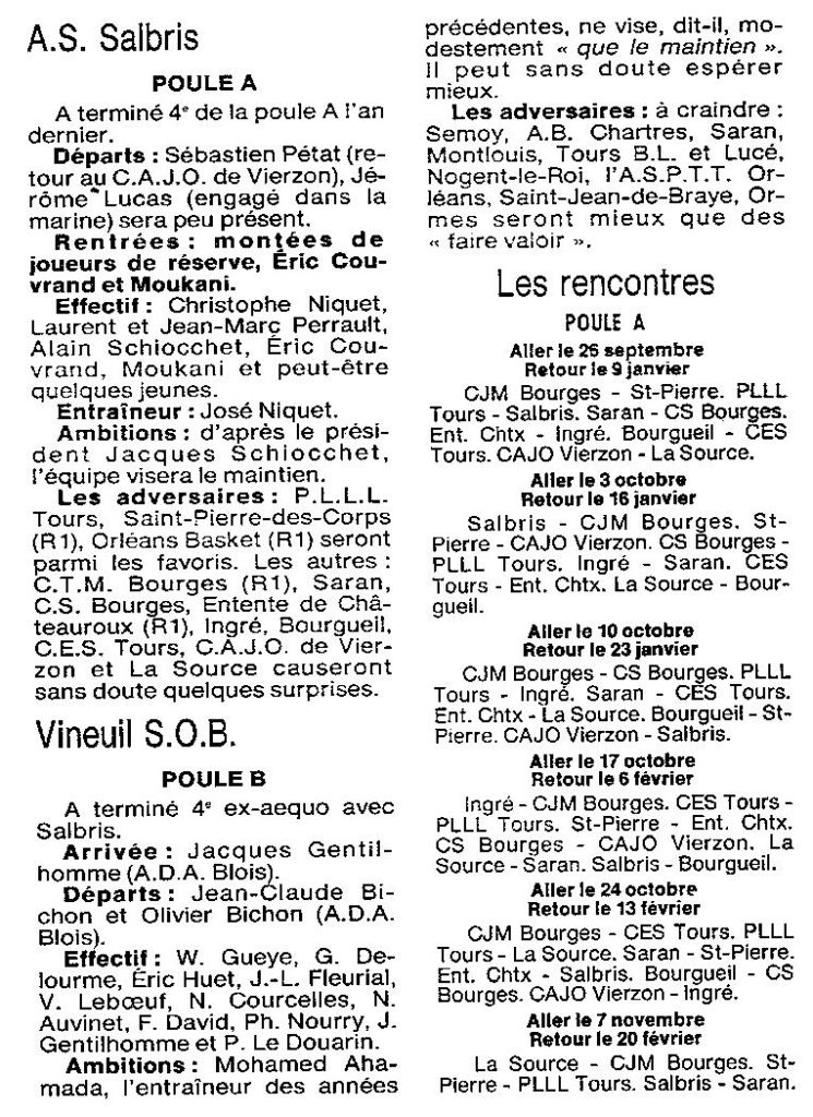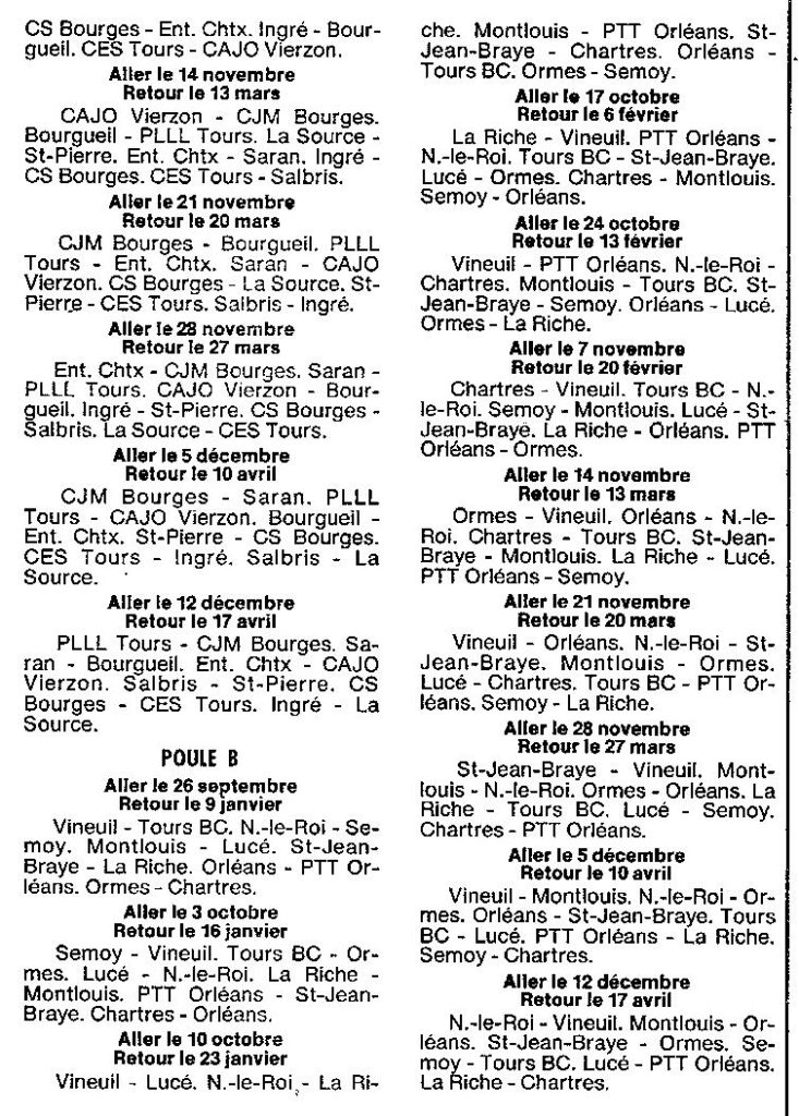Saison 1993-1994 : Calendrier du Championnat de Régionale Masculine 2