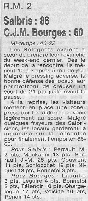 Saison 1973-1974 : En Championnat de Régionale Masculine 2, Salbris bat le CJM Bourges
