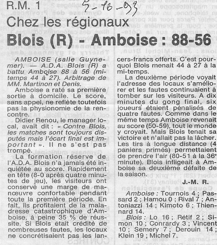 Saison 1993-1994 : En Championnat Régionale Masculine 1, l’ADA Blois (R) bat Amboise