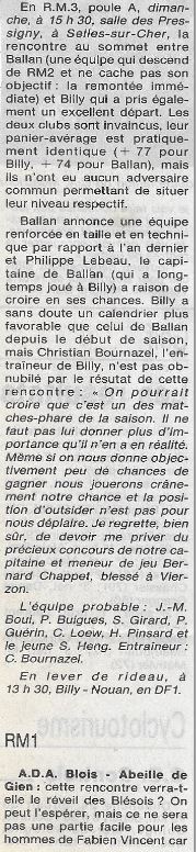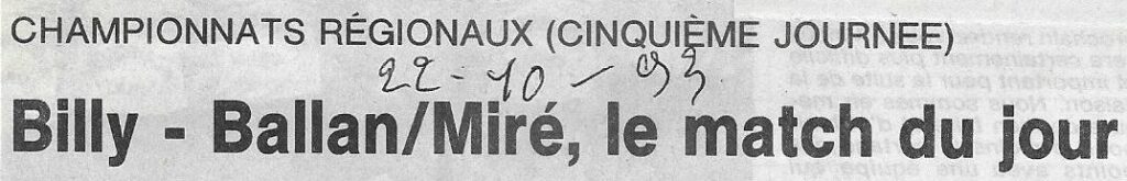 « Saison 1993-1994 : En Championnat Régionale Masculine 3, Ballan bat Billy