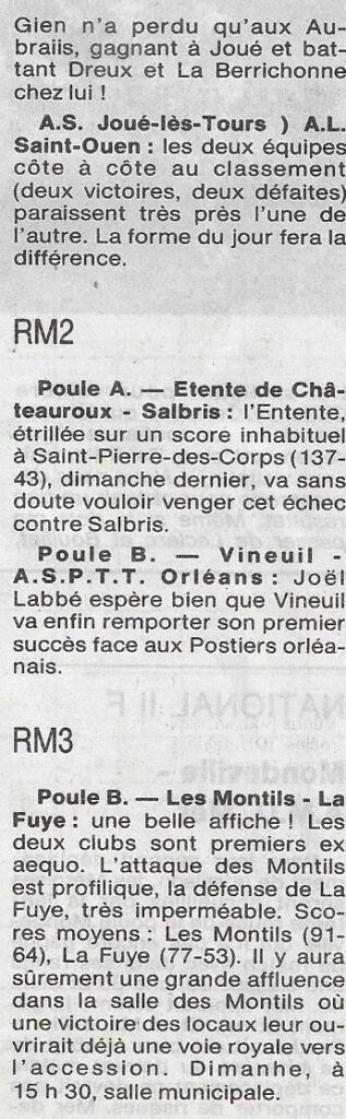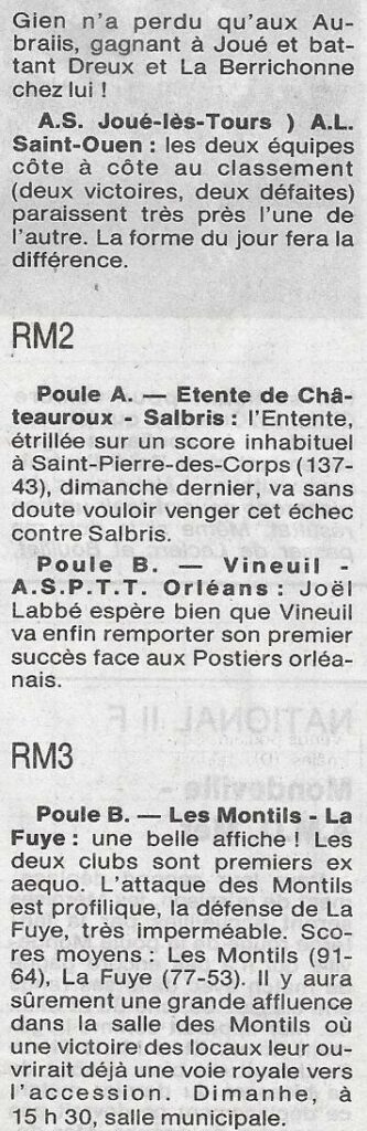 Saison 1993-1994 : Une 5ème Journée noire pour les équipes du Loir et Cher dans les Championnats Régionaux »