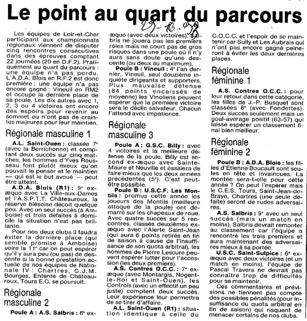 Saison 1993-1994 : Après cinq journées, le point dans les différents Championnats Régionaux pour les équipes du Loir et Cher