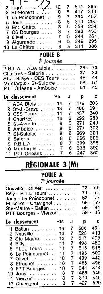 Saison 1993-1994 : Résultats et Classements de tous les Championnats Régionaux après la 7ème Journée