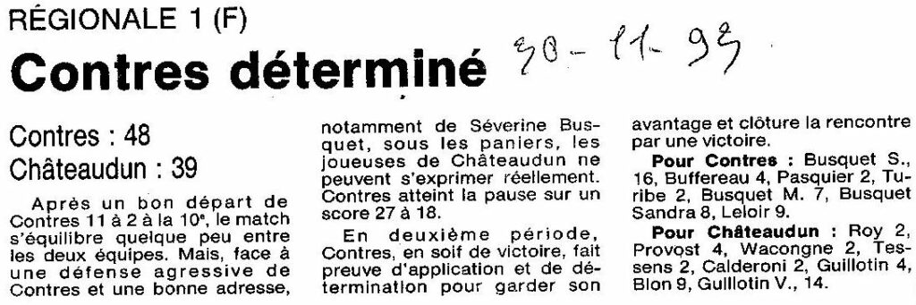 Saison 1993-1994 : En Championnat Régionale Féminine 1, Contres bat Châteaudun