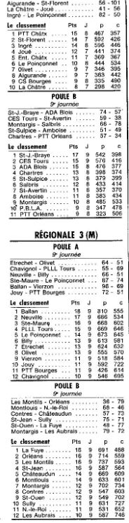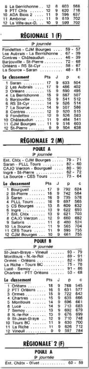 Saison 1993-1994 : Résultats et Classements de tous les Championnats Régionaux après la 9ème Journée