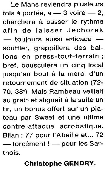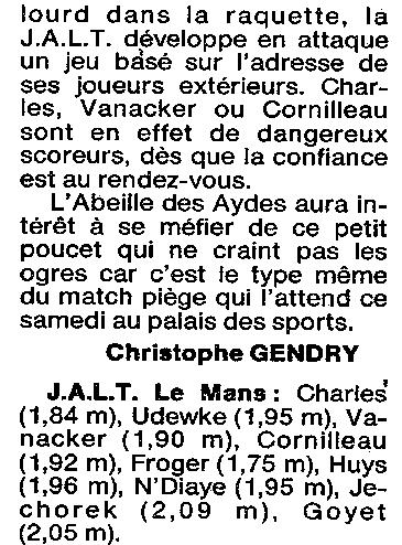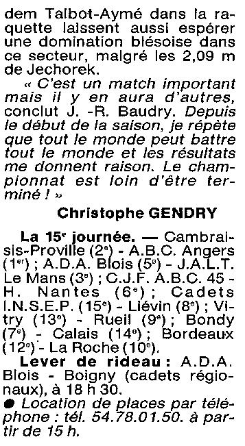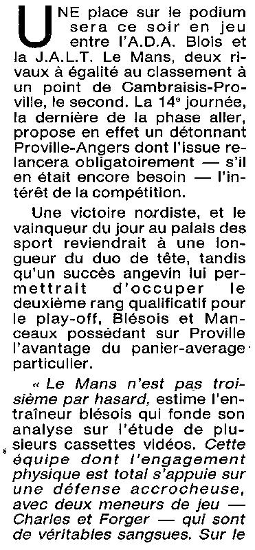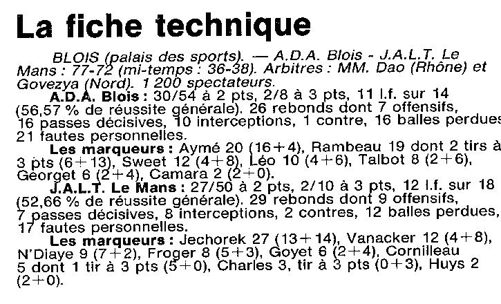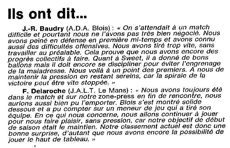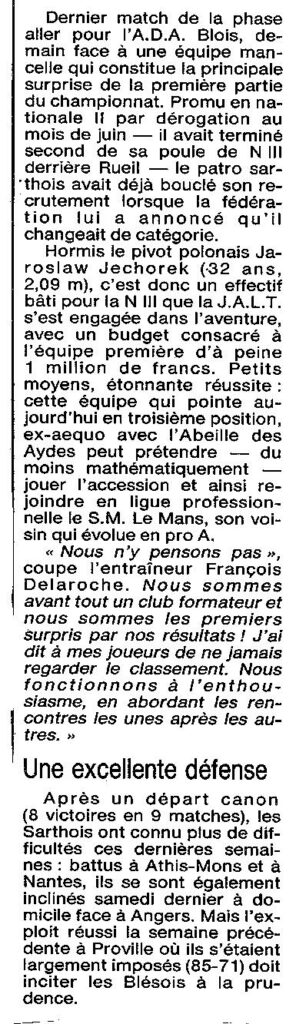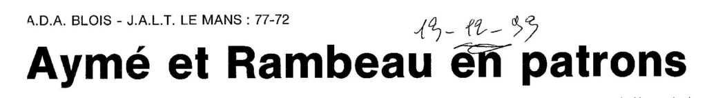 Saison 1993-1994 : En Nationale Masculine 2, l’ADA Blois s’impose face à la JALT Le Mans