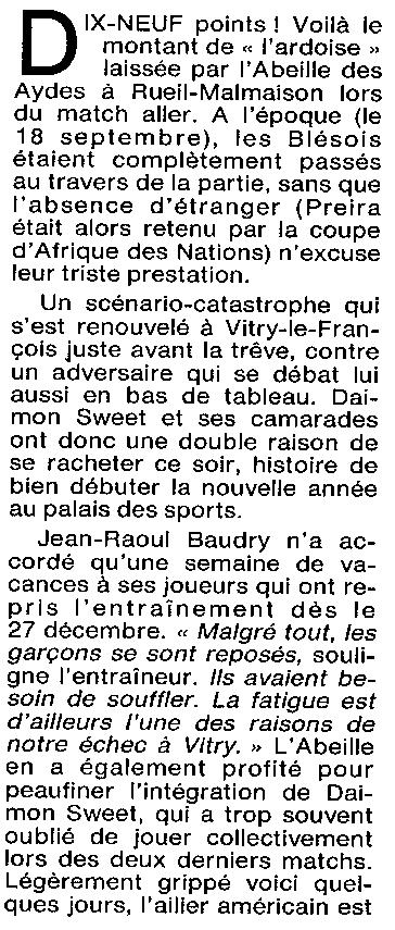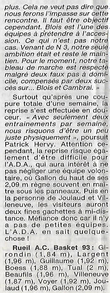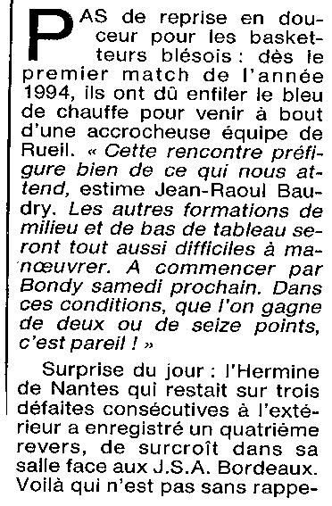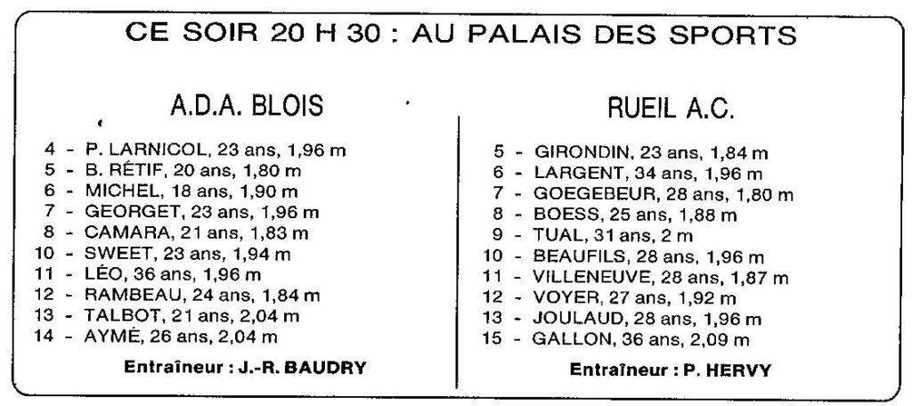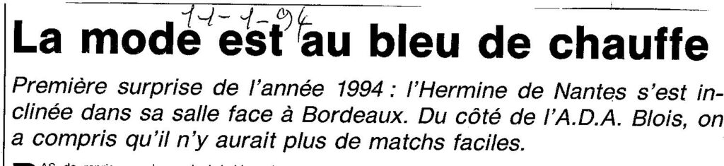 Saison 1993-1994 : En Nationale Masculine 2, l’ADA Blois à domicile s’impose face à Rueil